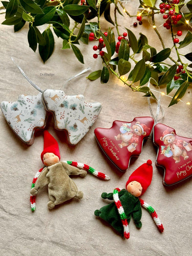 Tiny Gnome in the Christmas Tree Tin Gift Box