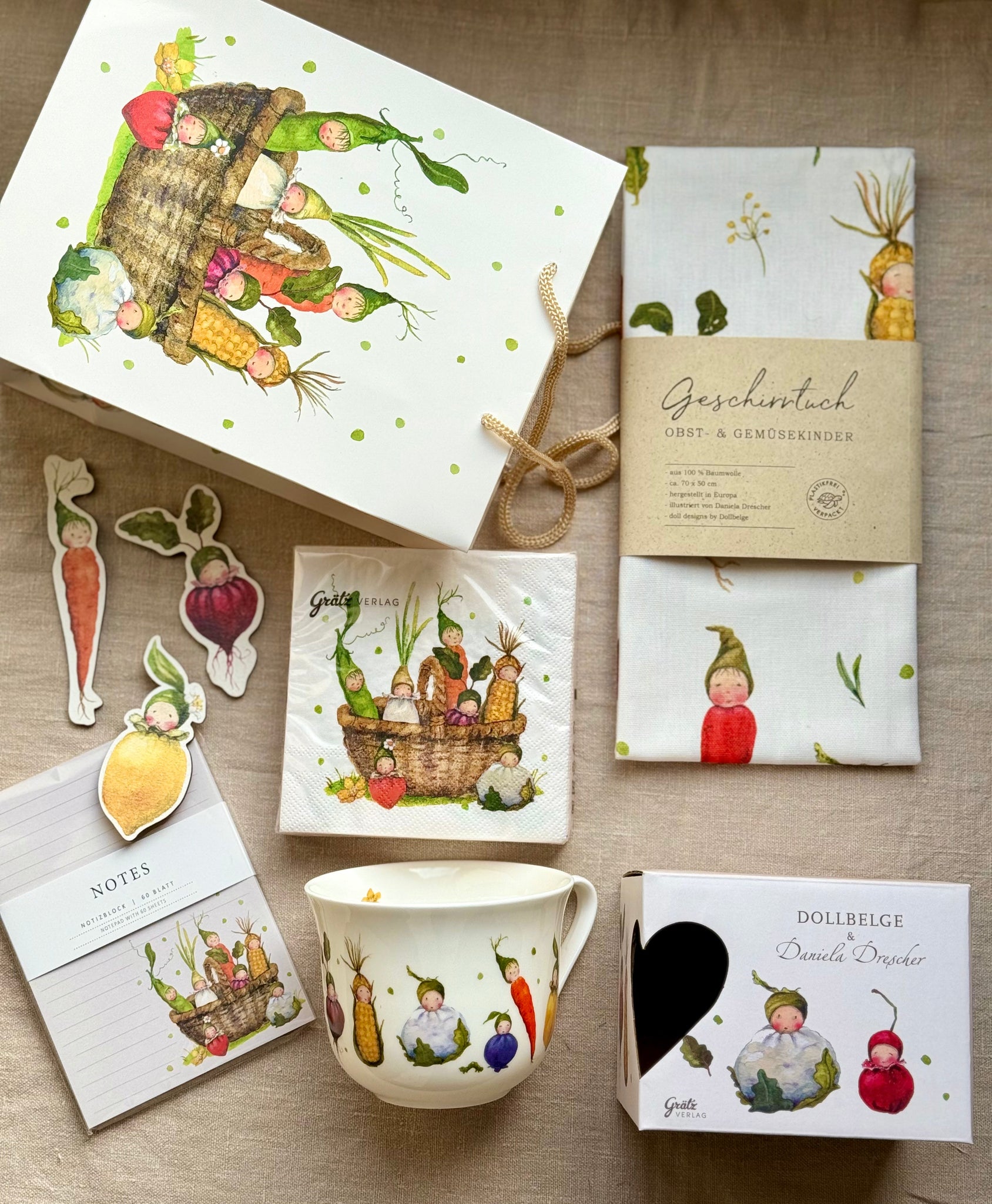 This Graetz Verlag Dollbelge Fruits and Veggies Gift Set, illustrated by Daniela Drescher which you can acquire as a must-have or as a wonderful present to give, contains the following: