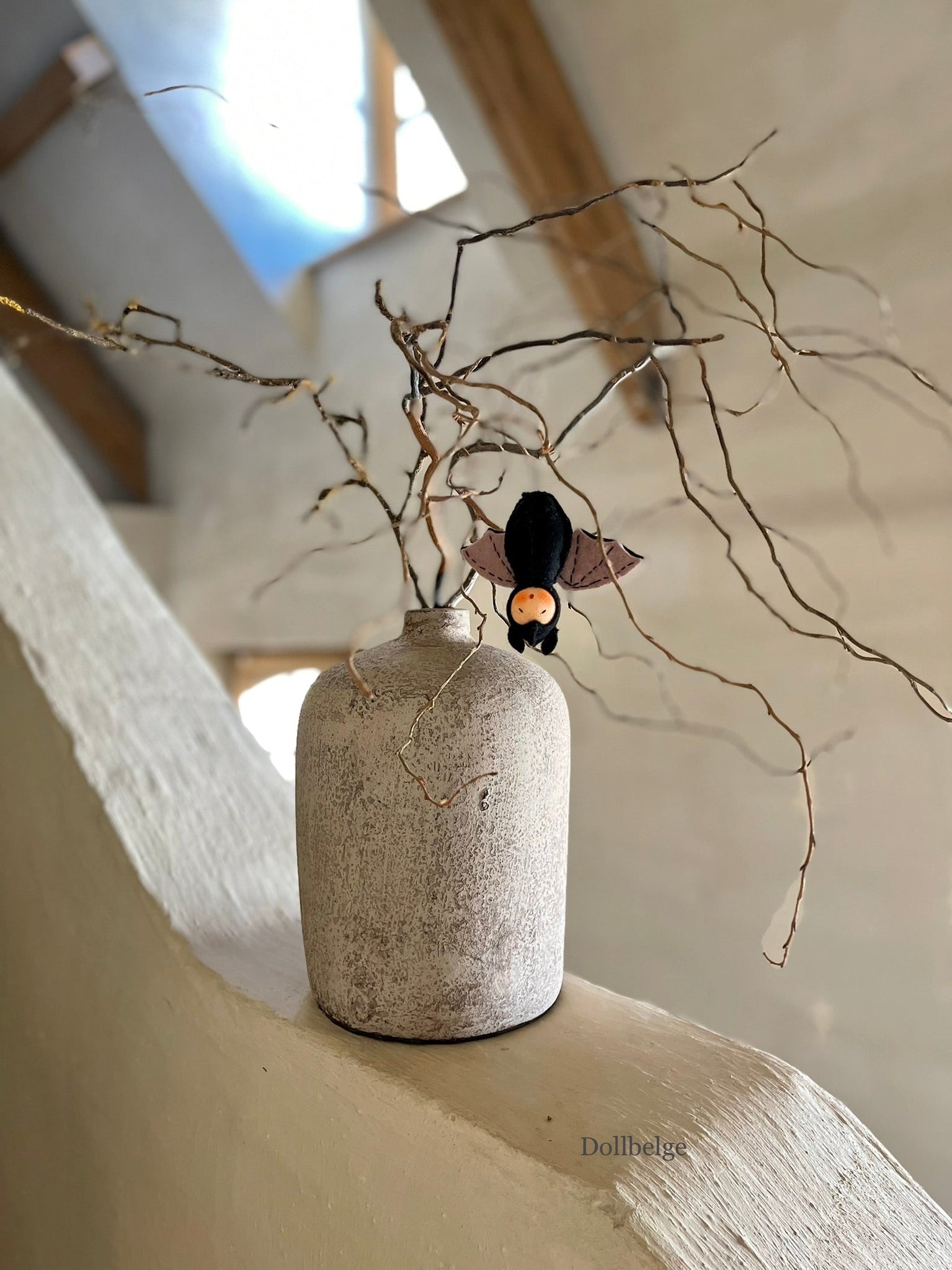 Tiny Bat - 9 cm only, handmade from wool felt, home dyed wool felt with hibiscus flower, stuffed with bio wool. 100% Natural.